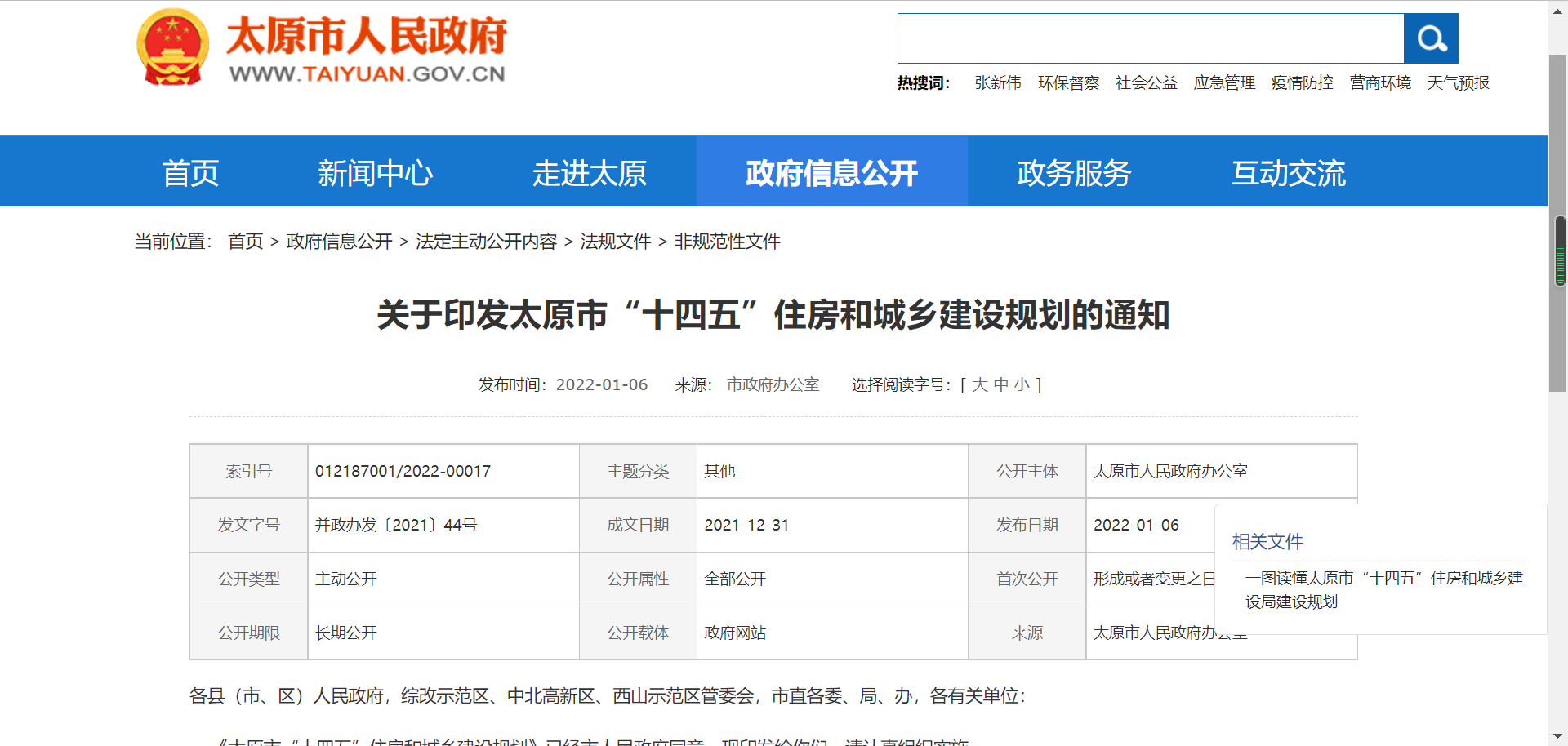 點擊藍字關(guān)注我們泰華遠大做最精心的裝配式建筑企業(yè),成就精彩員工夢想。太原市人民政府關(guān)于印發(fā)“十四五”住房和城鄉(xiāng)建設(shè)規(guī)劃的通知并政辦發(fā)〔2021〕44號各縣(市、區(qū))人民政府,綜改示范區(qū)、中北高新區(qū)、西山示范